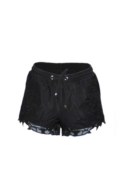 Shorts Luna, ricamato, coulisse con elastico e cinturino in vita, foderato internamente, colore nero